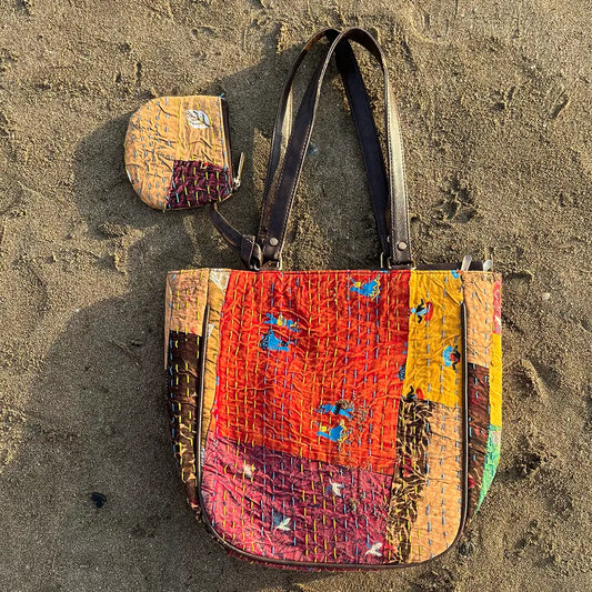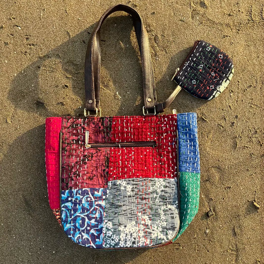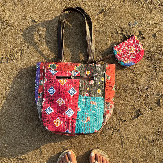 Floral Embroidered Katha Tote Bag
